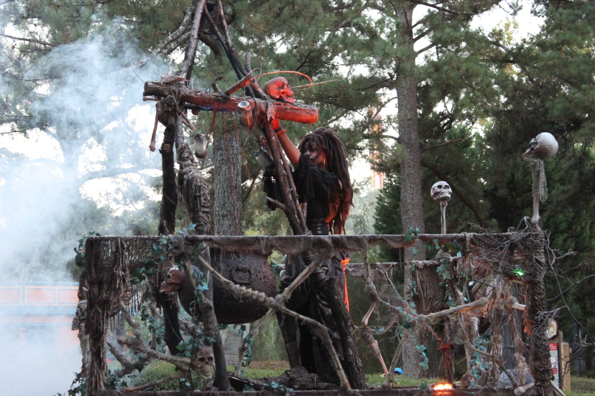 Upon entering the park, you’re meet with spooky characters and fog. The park is set up in a large loop and each area has its own haunted attractions. Some attractions require an extra fee beyond the entry price, including the haunted houses.
