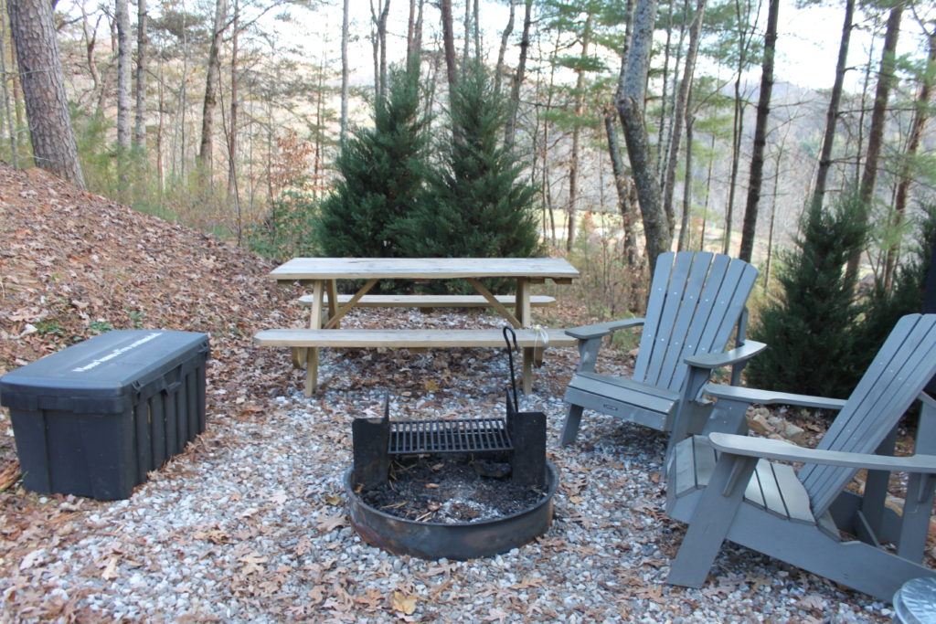 - Firewood for purchase, Adirondack chairs, and a fire pit with a grilling surface