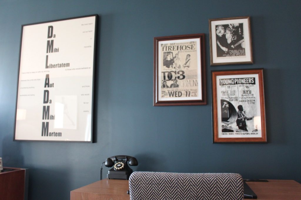The decor ties back to the city, including posters of punk rock bands that came up in the Richmond scene, prints of tennis and foxhounds, and quotes from Patrick Henry and Arthur Ashe. Room keys look like student IDs of notable graduates, including Warren Beatty, Patch Adams, Wesley Schultz of The Lumineers, and Shirley Maclaine.