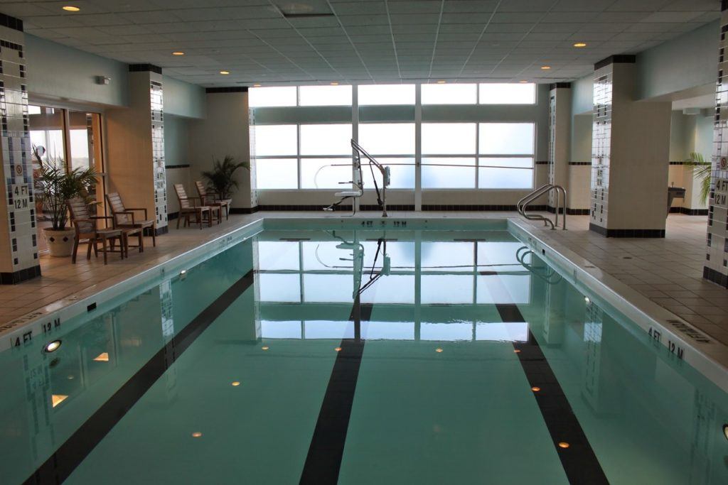 Westin believes in promoting health and wellness during your stay, so guests have 24-hour access to the fitness studio, which includes ellipticals, treadmills, and weights. There’s also a pool and sauna. The desk has a map of nearby running paths.