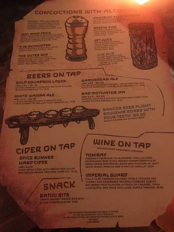 Make reservations before going to Oga’s Cantina (online or through the app) or expect to wait in line. Visitors are limited to 45 minutes and must remain in their designated spot while inside the cantina. Drinks are expensive, but funky and add to the ambiance.