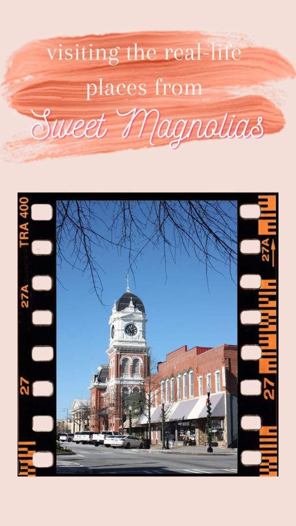 Downtown Covington features heavily on Sweet Magnolias. The square has a public park with war monuments, benches, and trees under the shadow of the courthouse. A number of scenes feature characters talking in this area. It’s a nice place to sit and enjoy a coffee while visiting!