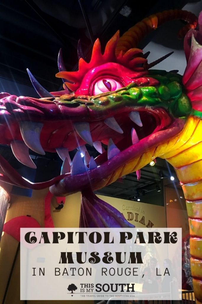 The Capitol Park Museum is located at 660 North Fourth Street, Baton Rouge, Louisiana 70802. It is open Tuesday through Saturday from 9 am to 5 pm. Entry is $7 for adults, $6 for seniors, students and military with ID and free for children under 12 and school groups.