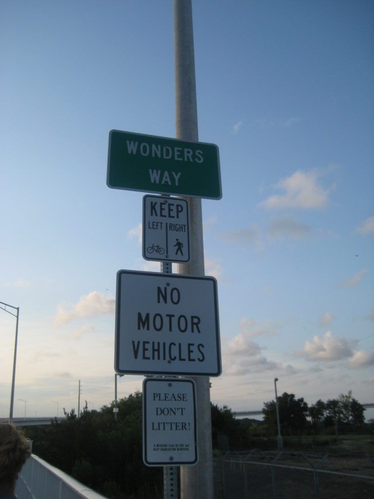 The downtown stretch starts with a long walk over the marsh before you even reach the main part of the bridge. Be sure to look at Drum Island underneath, where deer and other animals live. You can either go the full length and take the bus back, go halfway before returning to your car or go both ways. In either case, be sure to yield to bicyclists and stay in your lane.