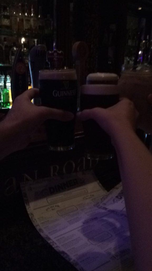 Guests can sip on the perfectly poured pints from Guinness, Harp, and Kilkenny along with whiskey flights and cocktails and bottles of wine.
