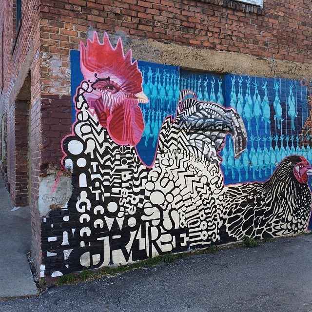 Downtown doesn’t have as many pieces of street art, but there are some great walls if you know where to look. The mural in the first picture is located off Patton Avenue and is one of the oldest downtown. Wilson Alley and Lexington Gateway are other favorites.
