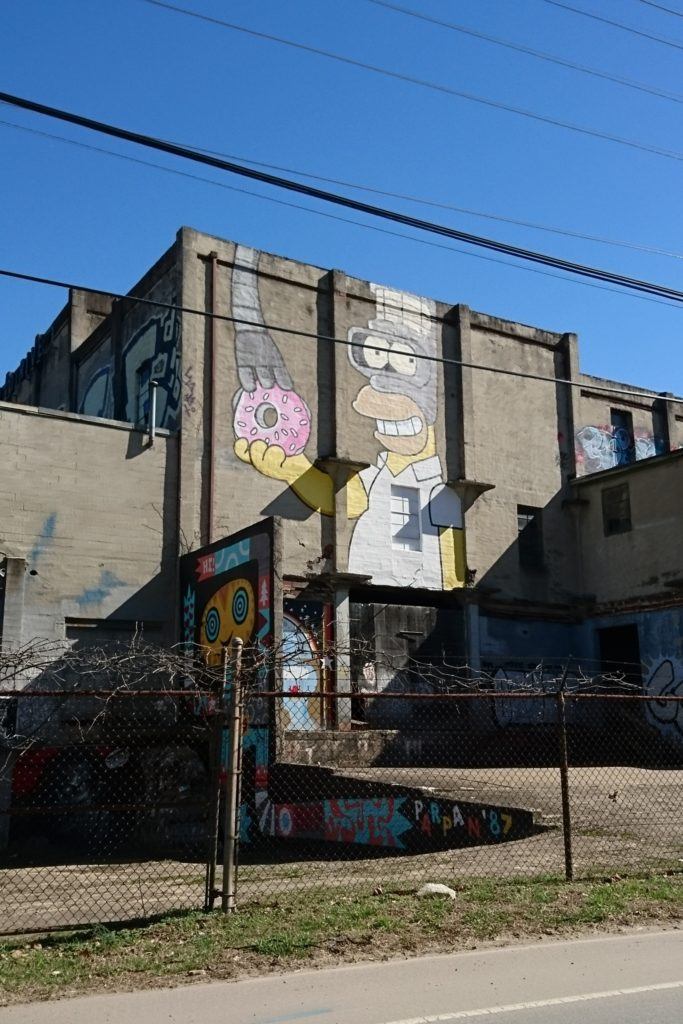 West Asheville is another neighborhood with plenty of colorful murals. The pictured “Play Every Day” is one of my favorites. Over at Sky Lanes bowling alley there’s a piece that is a nod to The Big Lebowski while Haywood Games has a depiction of Batman. The Odditorium, The Mothlight, and 474 Gallery also have colorful walls.
