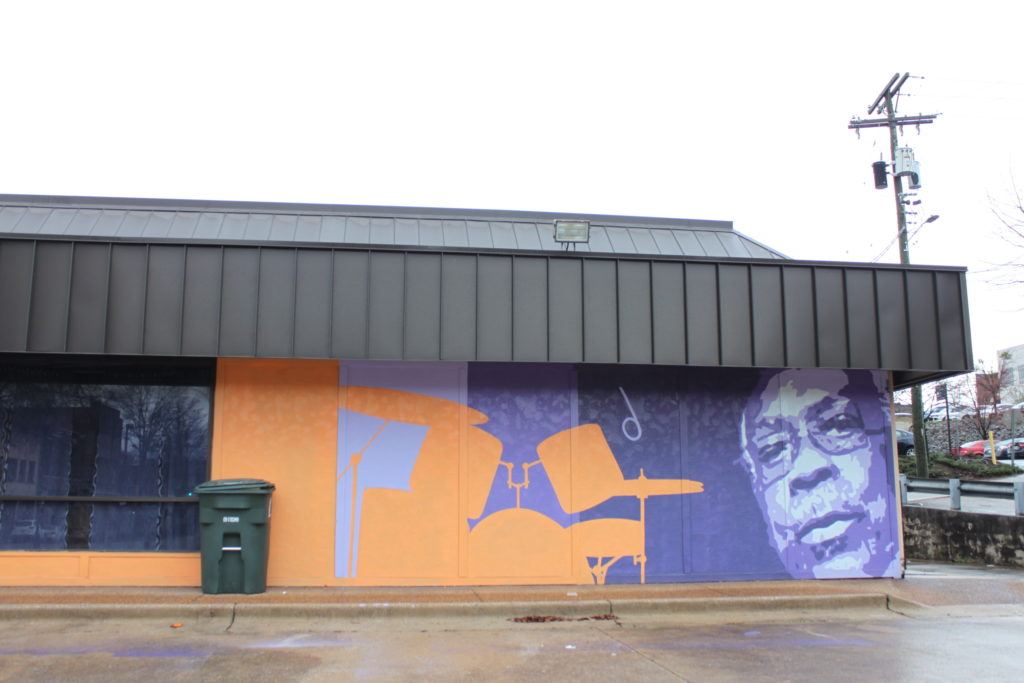 Alongside The Crash Pad Chattanooga is the “Traveling Musician,” painted by The Artist Seven, which honors the city’s musical and railroad history. The neighboring Chattanooga Choo Choo also has some temporary art pieces on the interior side that faces Songbirds.