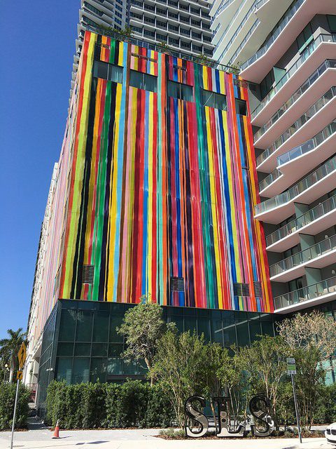 Brickell was a modern financial district but has been brightened up by public art. Now it has trendy restaurants and hotels that rival those of the more popular South Beach. Markus Linnenbrink added his colorful work on the side of the SLS hotel through a partnership with the nearby Perez Art Museum.