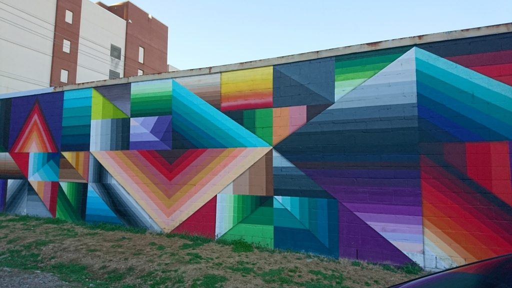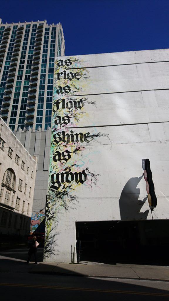 If you only go to one neighborhood in Nashville in search of street art, make it The Gulch. There’s almost always a crowd at the “What Lifts You” wall by Kelsey Montague, tucked next to a parking garage by Biscuit Love.