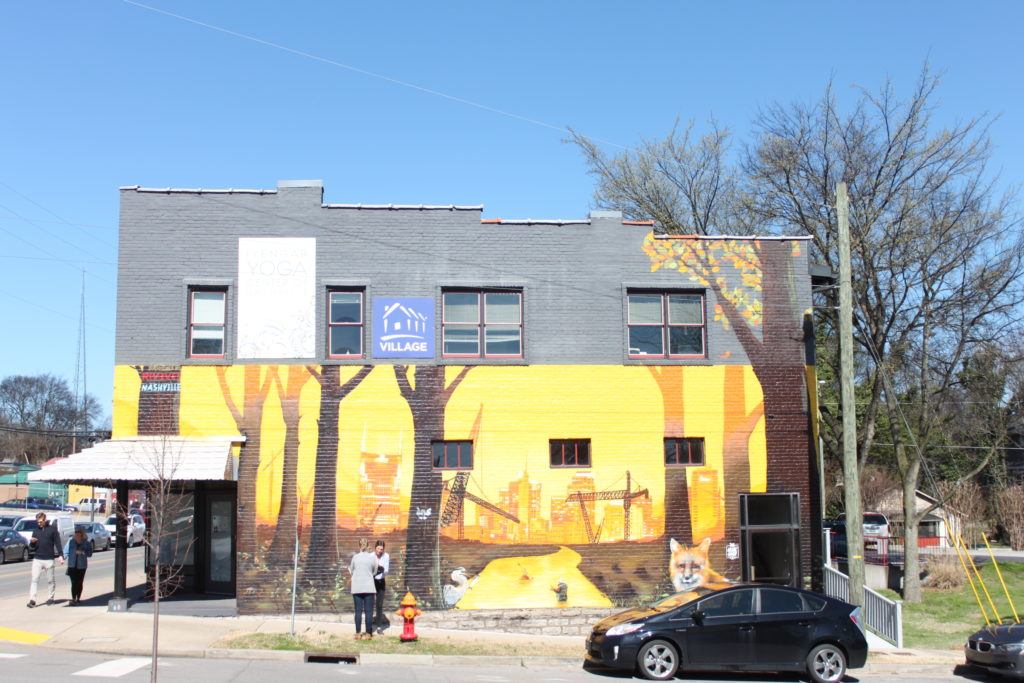 Louis Masai portrays the western flying squirrel in his piece on the side of Hot Yoga East Nashville. Eastside Murals and Leah Tumerman have a number of pieces in East Nashville, including one next to Bongo Java.